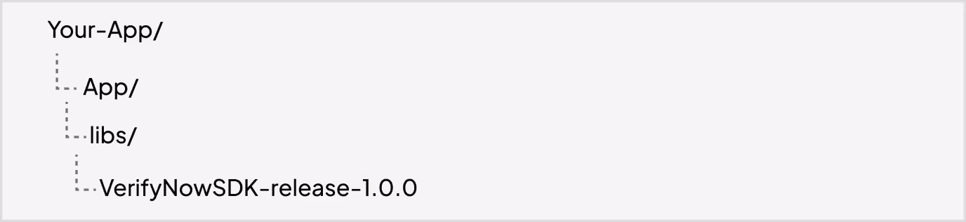 Copy the VerifyNowSDK-release-1.0.0.aar file into your app module's libs/ directory.